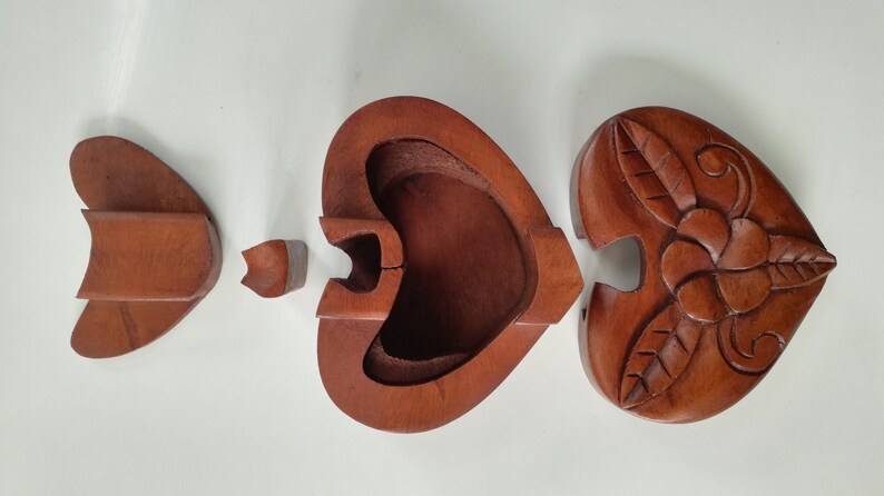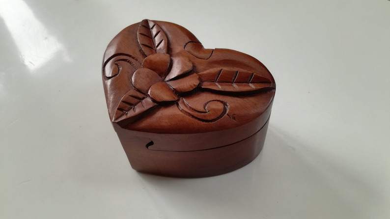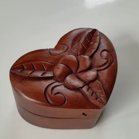 Caja de Madera con Forma de Corazón para Guardar Joyas | Caja de Almacenamiento de Madera Natural Hecha a Mano para Anillos, Pendientes, Regalo de Boda