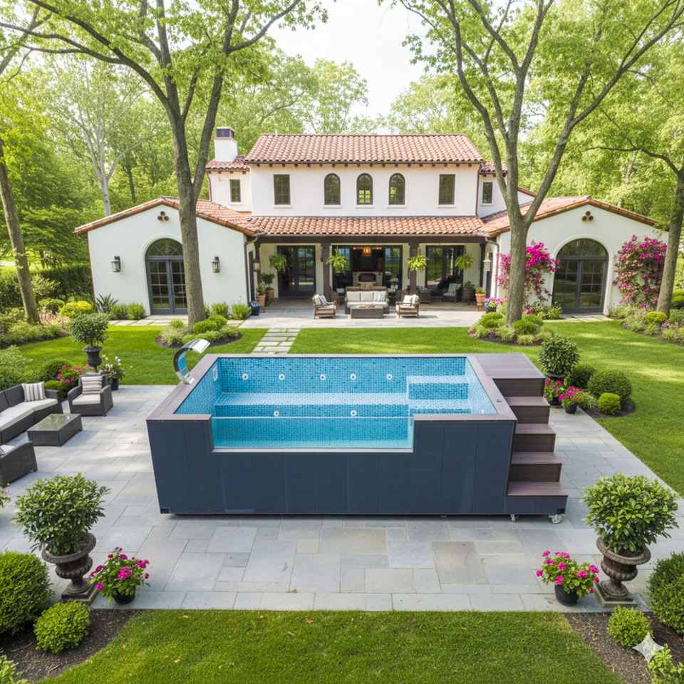 Piscina Familiar de Madera con Jardín en la Azotea, Piscina Elevada de Fibra de Vidrio de Lujo con Paredes de Acrílico