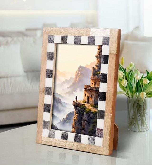 Marco de fotos con incrustaciones de madera Marcos de fotos de resina Fabricante decorativo para el hogar Marco de imagen de lujo para mesa y pared disponible