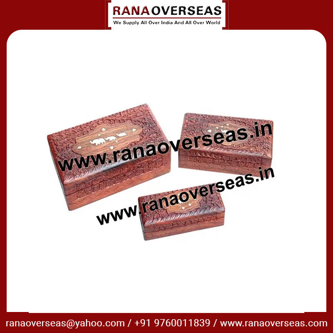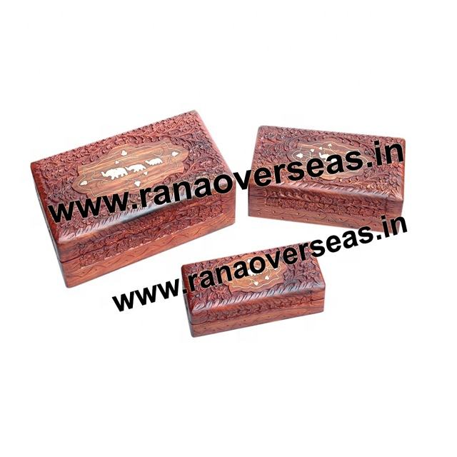 Nombre del Producto:Juego de joyero de madera con incrustaciones de latón de elefante