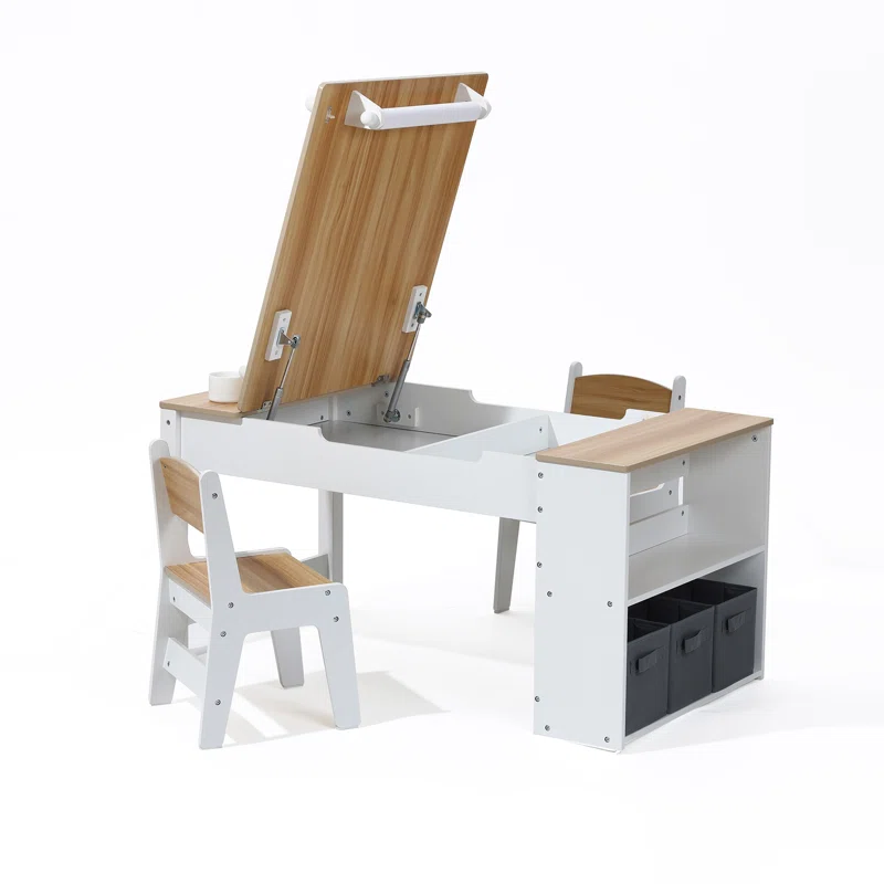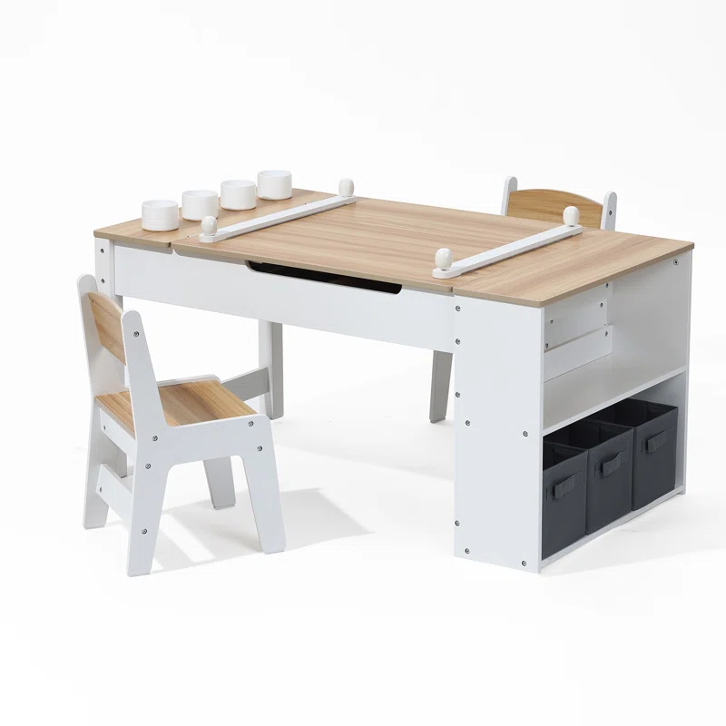 Nombre del producto:Mesa de estudio para niños y juego de sillas con estantería de almacenamiento y 2 sillas