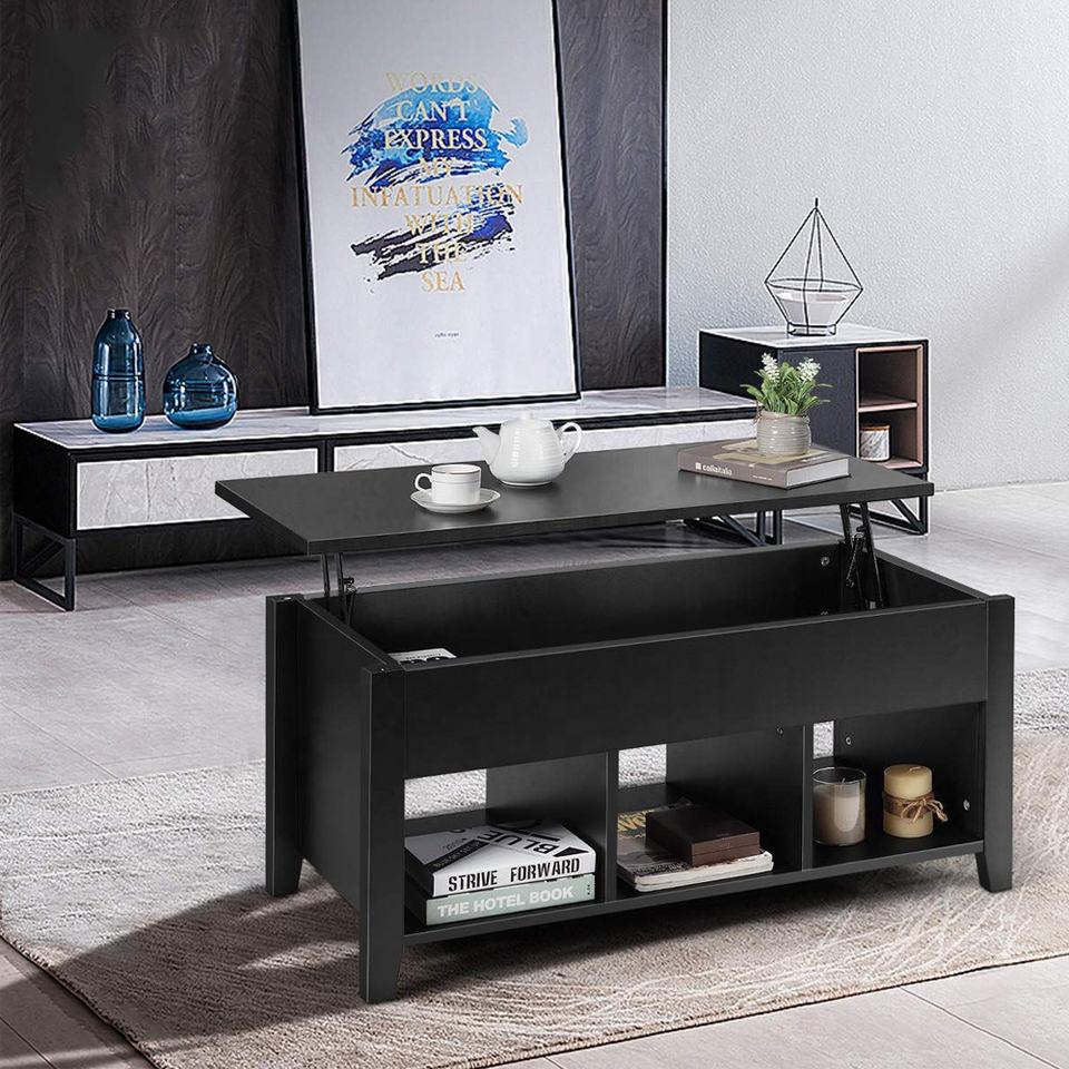 Mesa de centro superior elevadora de madera con compartimento de almacenamiento oculto 3 estantes inferiores abiertos Mesa de centro emergente de un solo nivel Sala de estar
