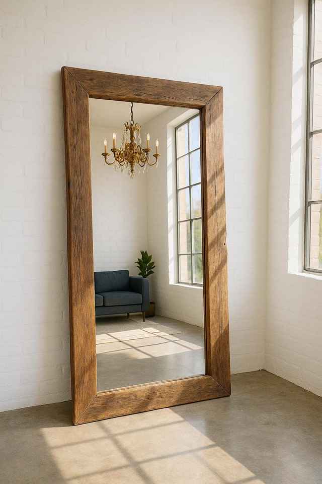 Espejo rústico de madera con borde enmarcado moderno con marco de hierro Espejo decorativo personalizable para oficina en casa No requiere electricidad