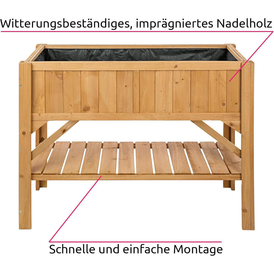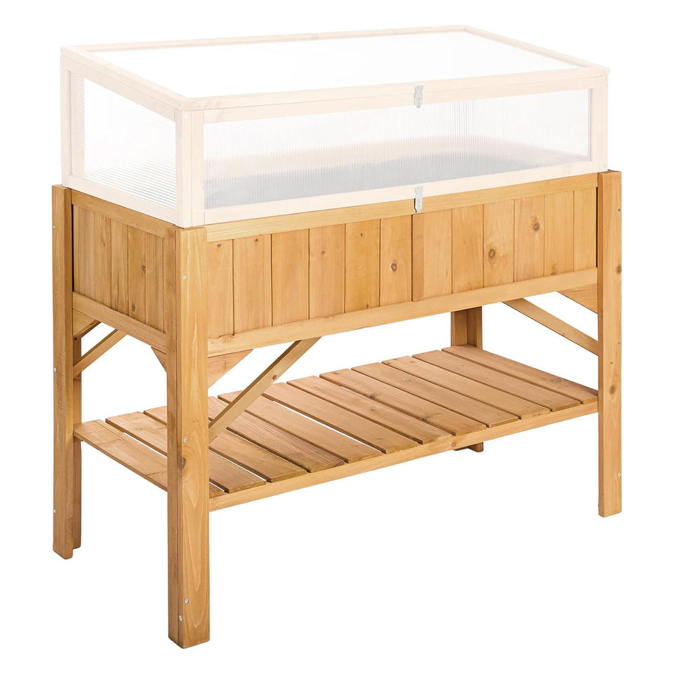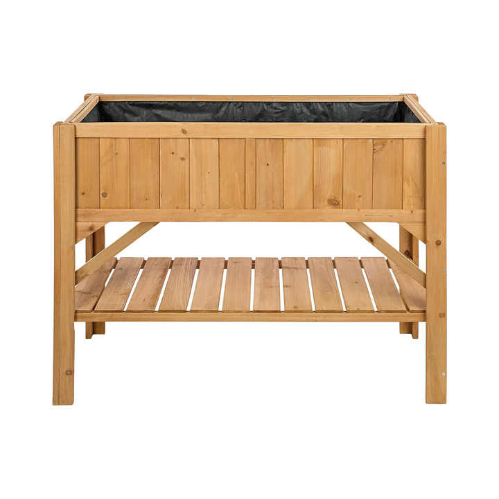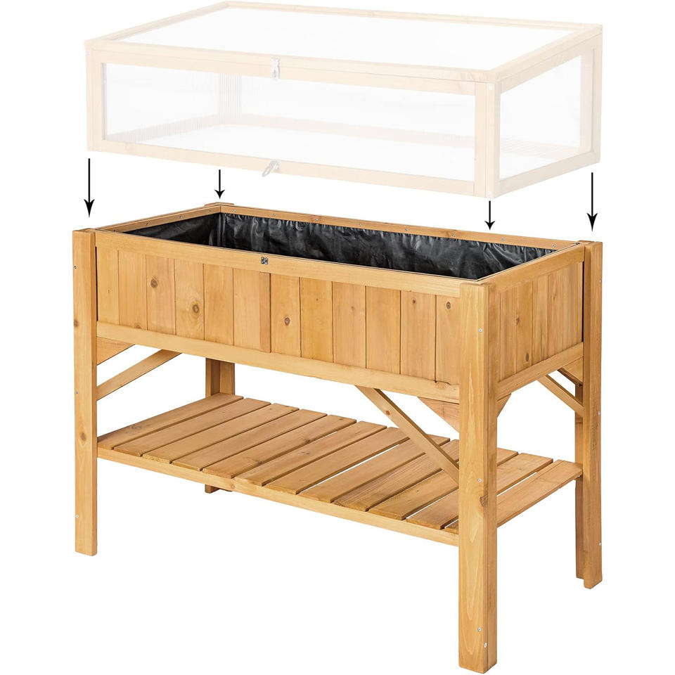 Cama elevada de madera con compartimento de almacenamiento para jardín, balcón y patio, maceta de madera para exteriores
