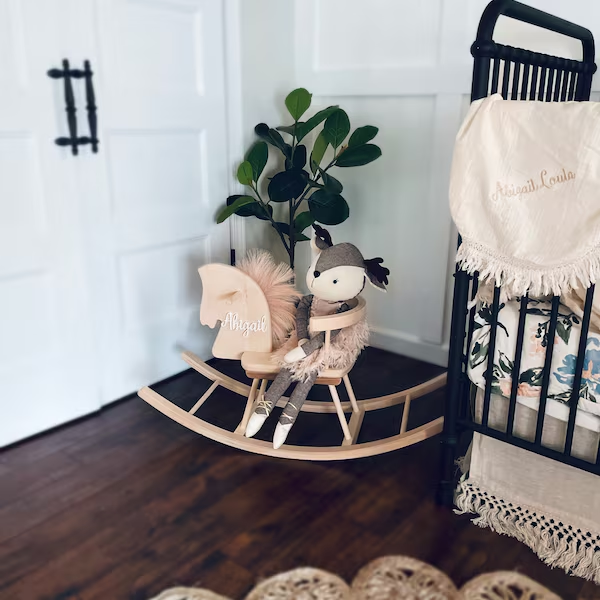 Caballo mecedora de madera Niños Caballo mecedora Juguetes infantiles hechos a mano de madera