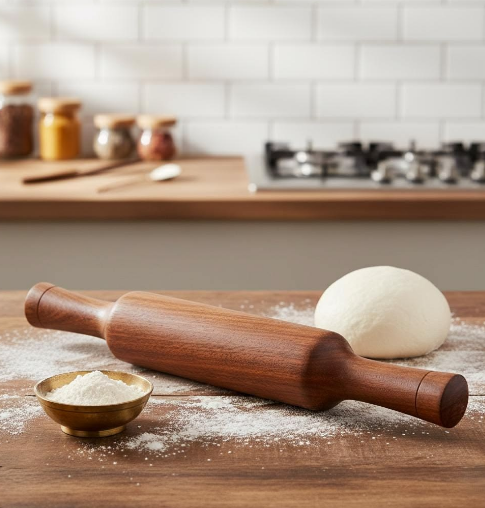 Rodillo de Madera para Roti y Chapati, Hecho a Mano, Ecológico, Esencial para la Cocina, Cocina Tradicional India