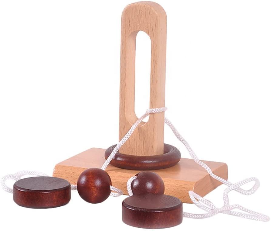Juego de rompecabezas de cuerda de madera para adultos/niños, rompecabezas de anillo, solución de cuerda Central