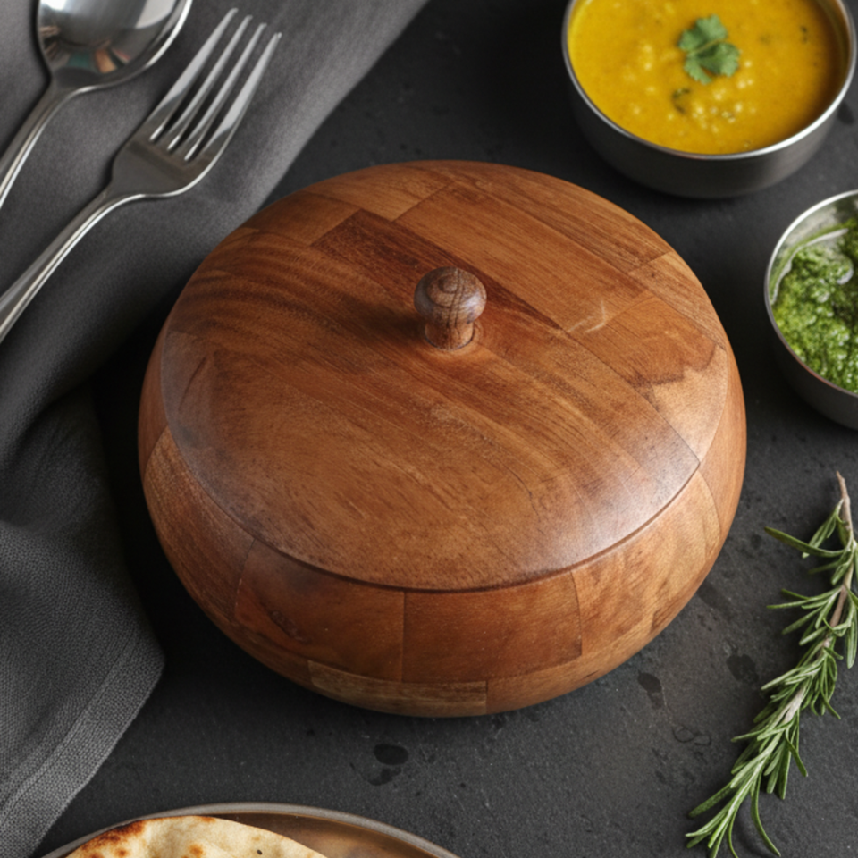 Caja Redonda de Madera Hecha a Mano Ecológica Premium para Roti y Chapati | Contenedor para Guardar Pan Indio