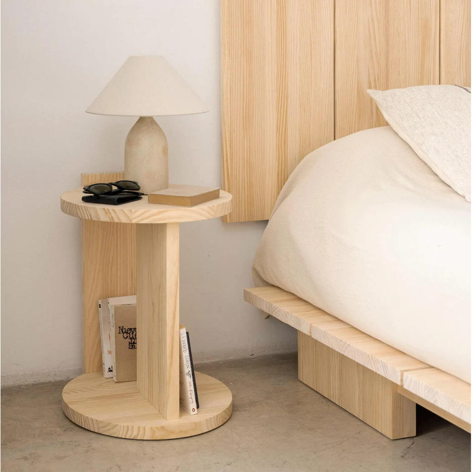 Estante de Almacenamiento Redondo de Madera con Soporte de Niveles para Exhibición en Interiores, Material de Madera de 2 Niveles