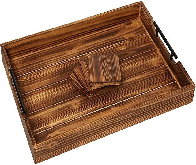 Bandeja de servicio de madera con juego de posavasos Bandejas de café Bandeja de fiesta Juego de posavasos Posavasos Comida de F S International