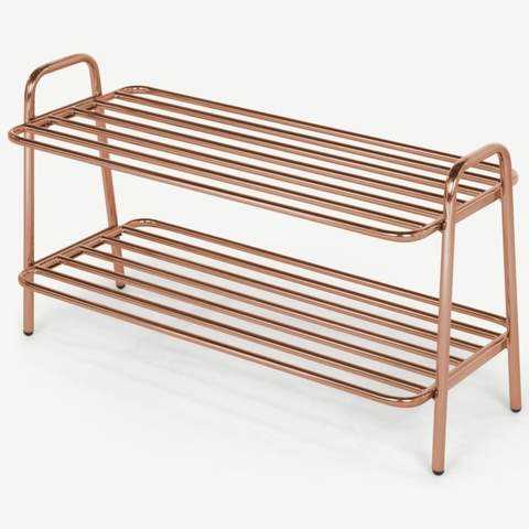 Organizador de zapatos de madera para la sala de estar con diseño decorativo y base estable.