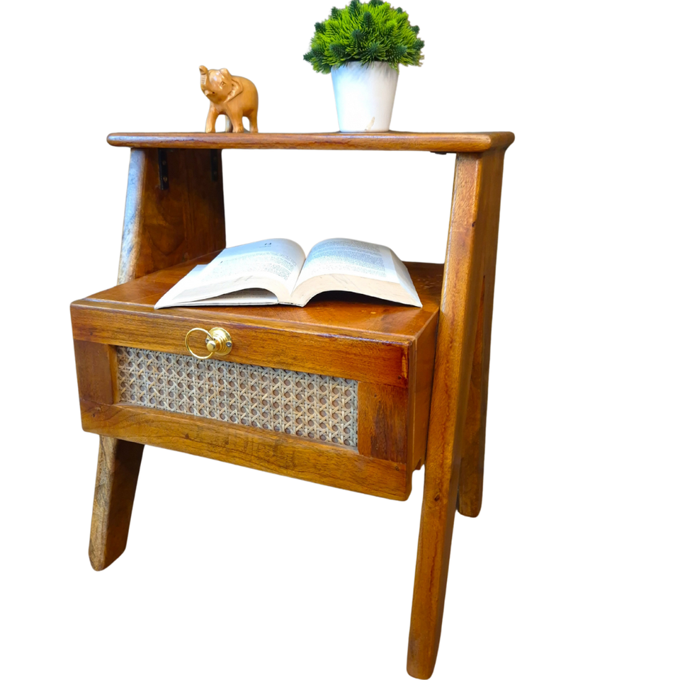 Mesa auxiliar de Madera con trabajo de ratán en cajón, diseño atractivo único elegante para muebles de decoración del hogar disponibles a la venta