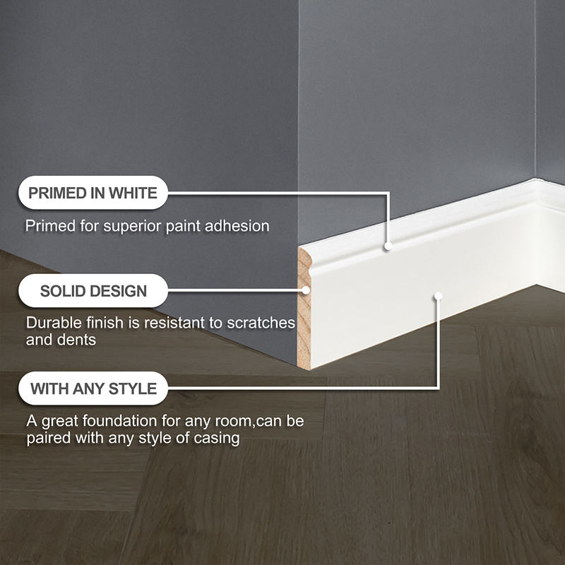 Zócalo de Madera MDF, Rodapié de Pino Blanco, Imprimado con Yeso, Duradero, Ecológico, Tamaño Personalizado, Moldura Moderna