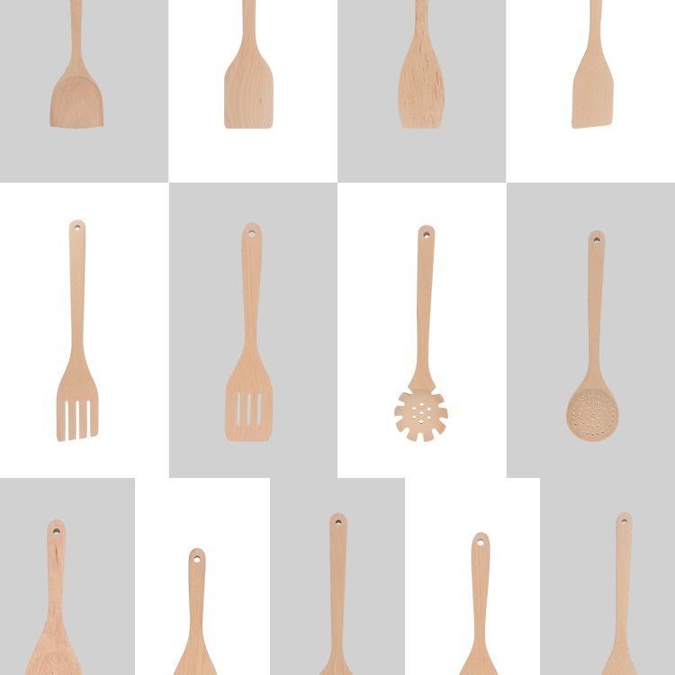 Juego de espátulas de madera, utensilios de cocina antiadherentes con mango largo y pequeño, herramientas de cocina