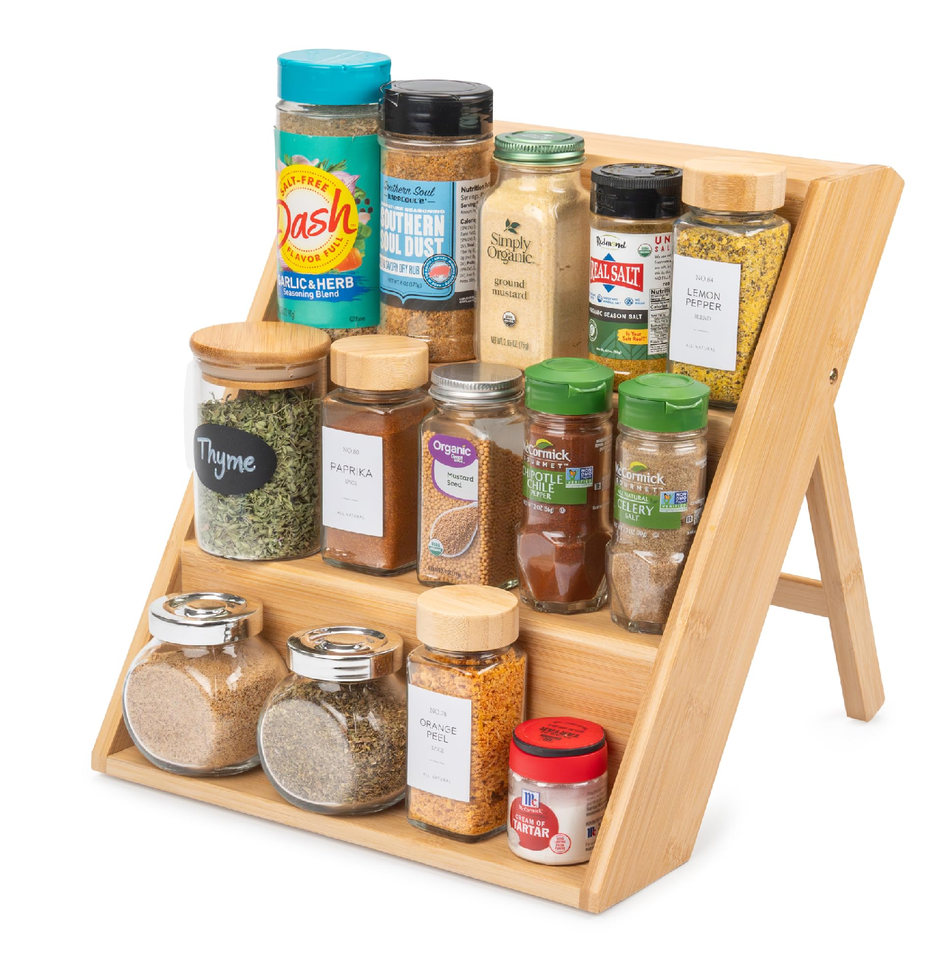 Estante de almacenamiento de especias de madera Conner de cocina de 3 niveles Estante de ahorro Estante de almacenamiento de especias Diseño personalizado Forma de bandeja