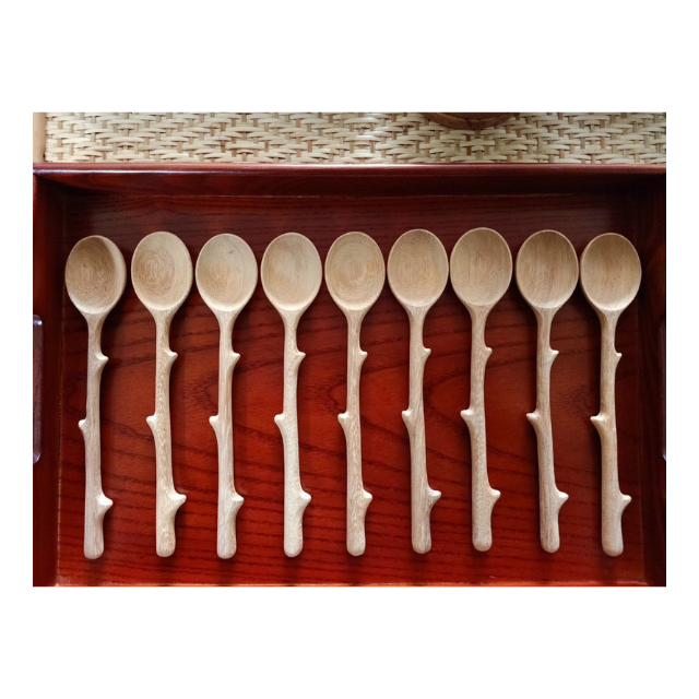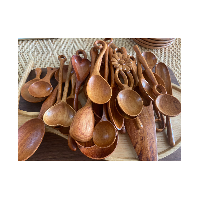 Juego de cucharas de madera para cocinar en la cocina-Cuchara y tenedor de madera desechables-Cucharas de madera de olivo vietnamitas para uso diario