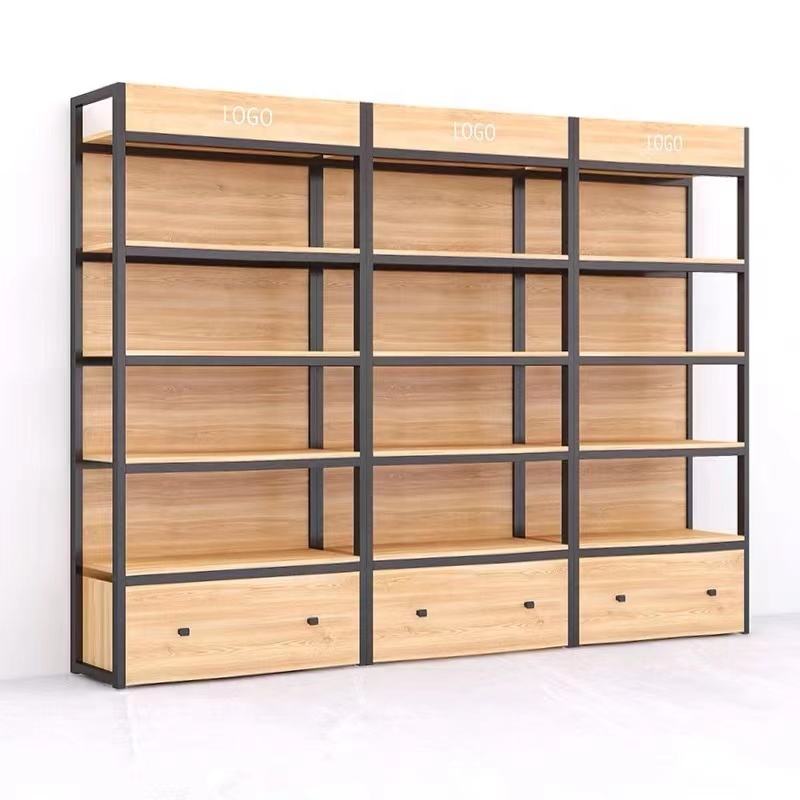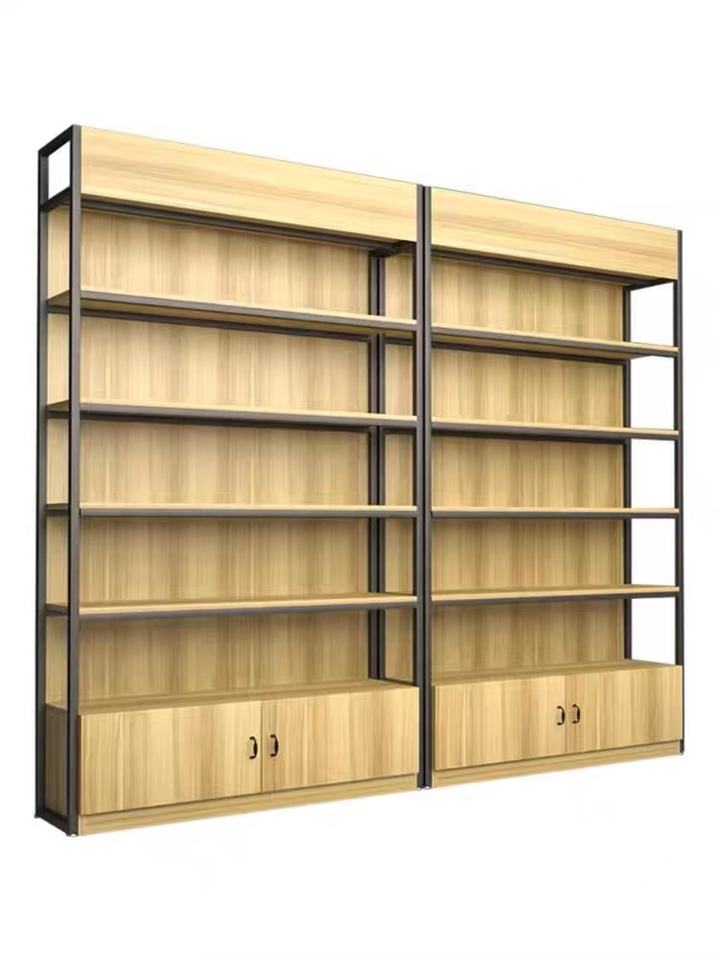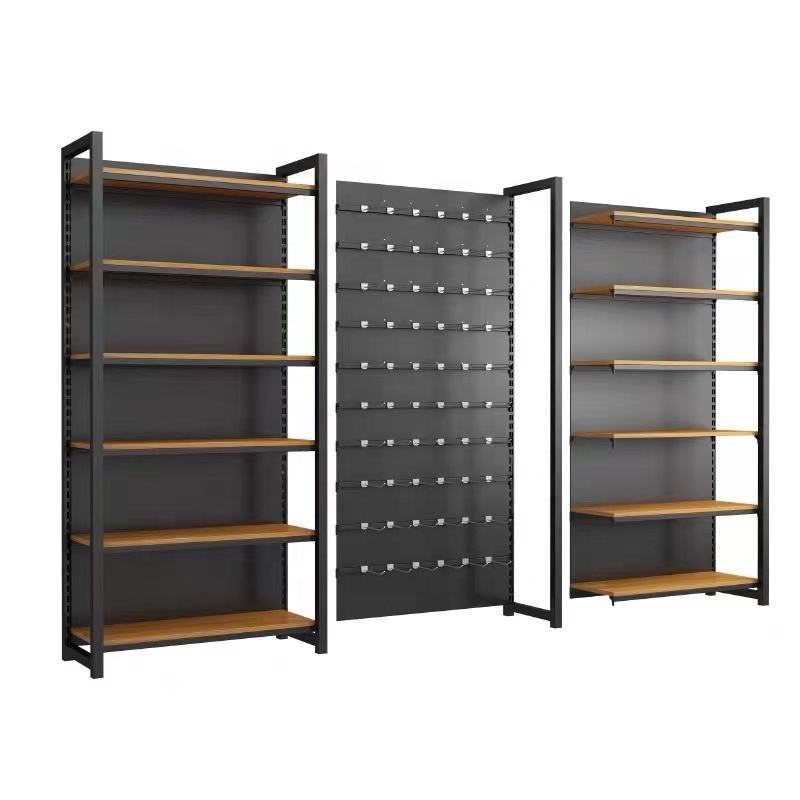 Sistema de Estanterías de Almacenamiento de Acero y Madera, Equipo para Tiendas, Usado en Supermercados