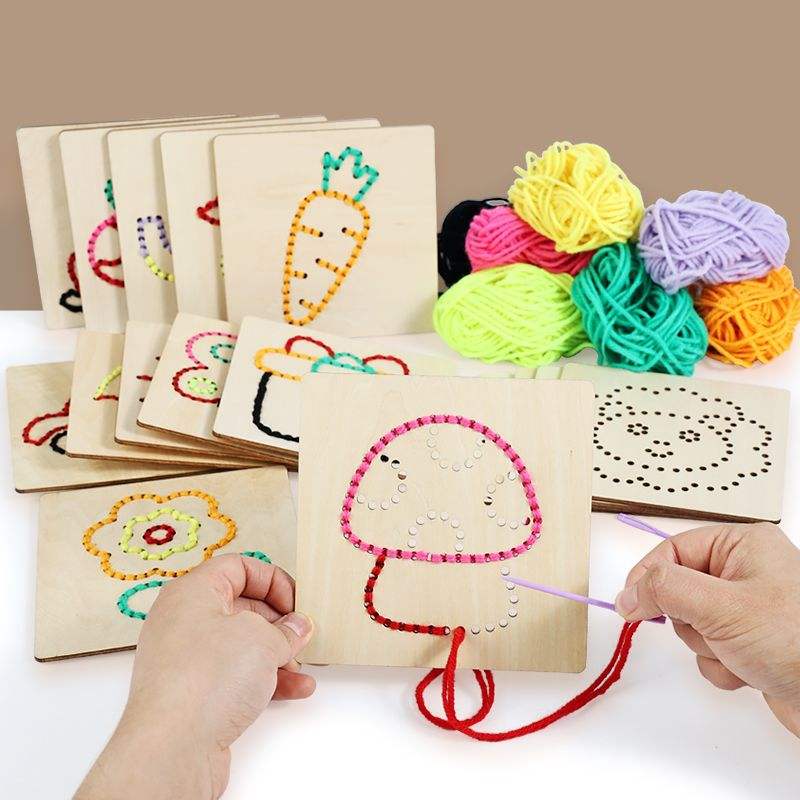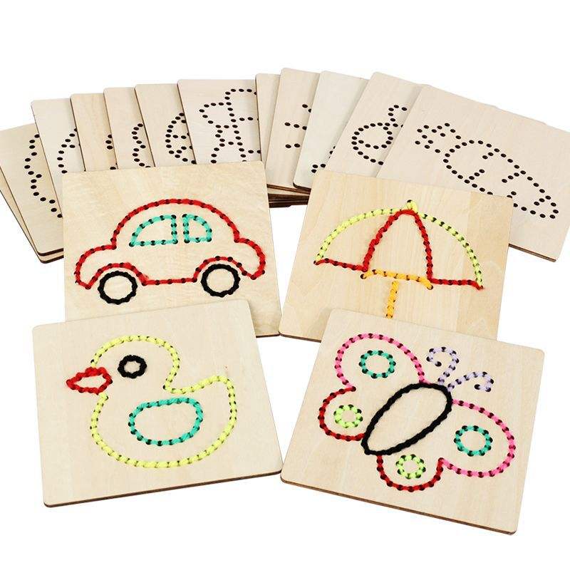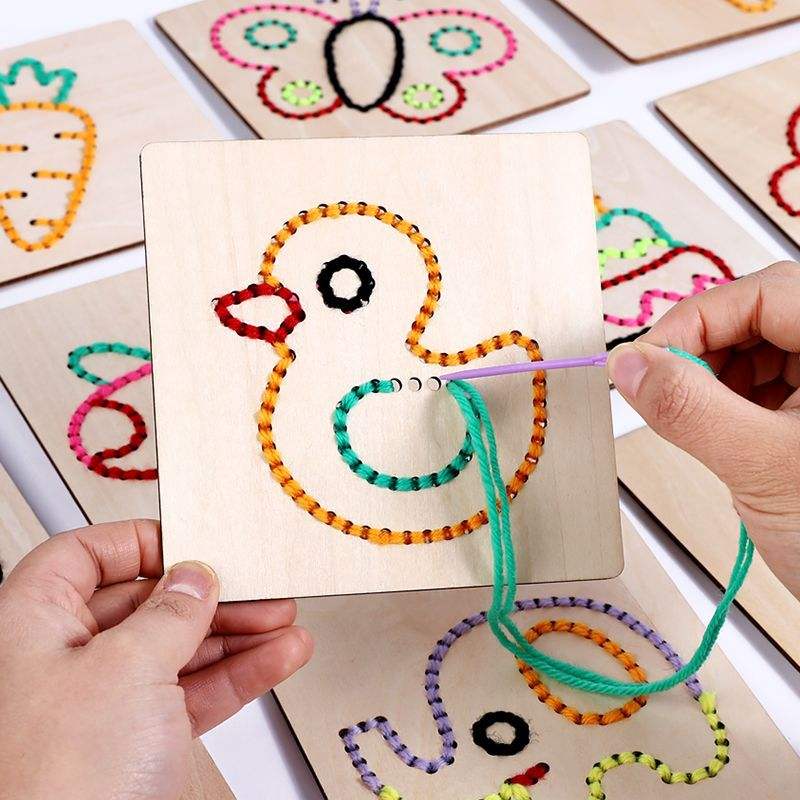 Tablero de madera para coser para niños, juguete de costura, 28x17x6,5 cm, Kit educativo para niños de 4 a 6 años