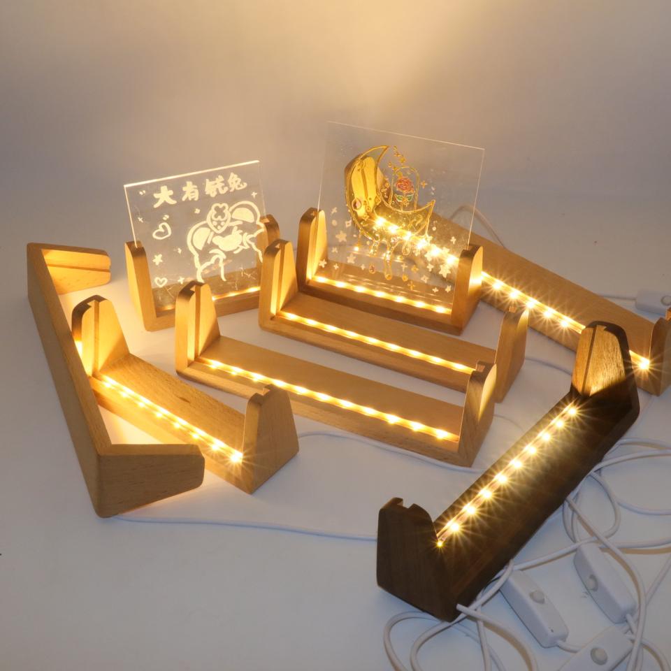 Base luminosa de madera en forma de U que muestra el calendario de escritorio LED portalámparas de madera maciza