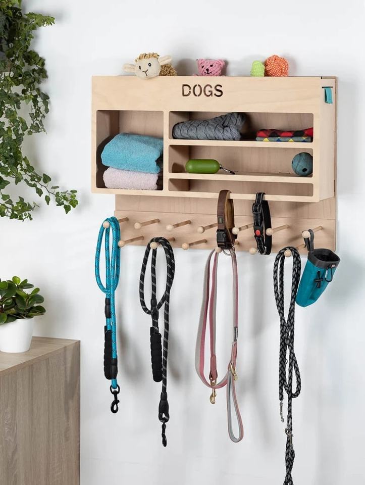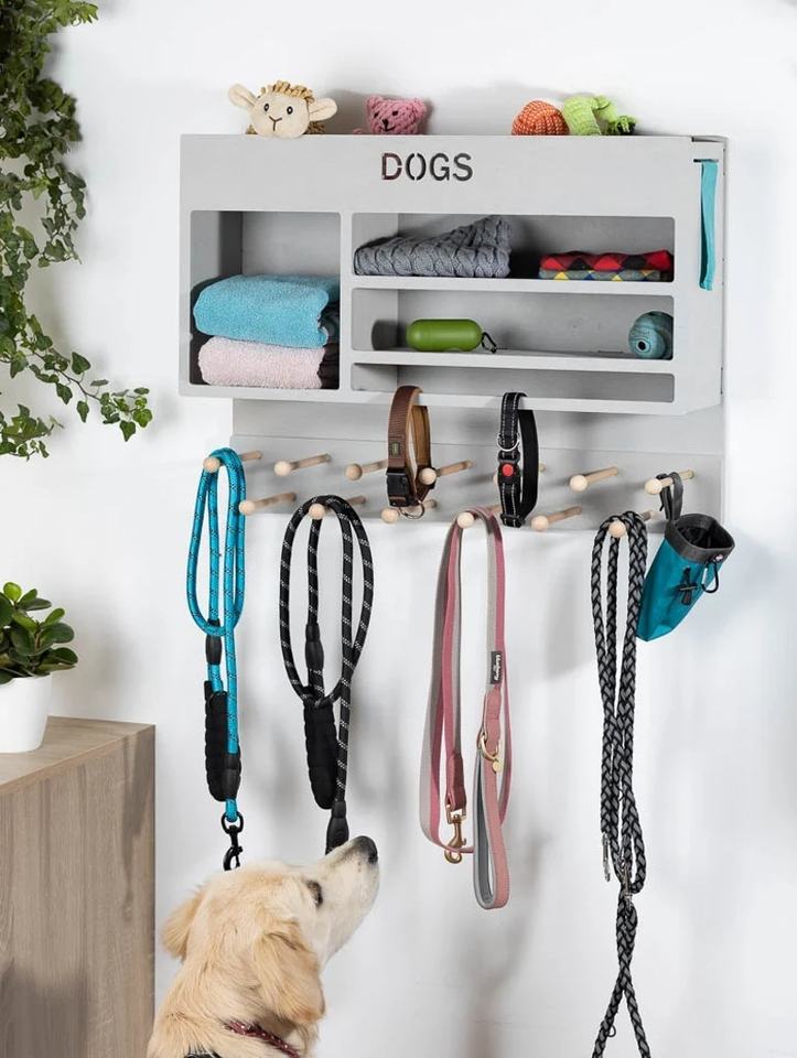 Perchero de pared de madera para perros, estación de almacenamiento para mascotas, estante para colgar ropa de mascotas, para colgar correas y accesorios para perros