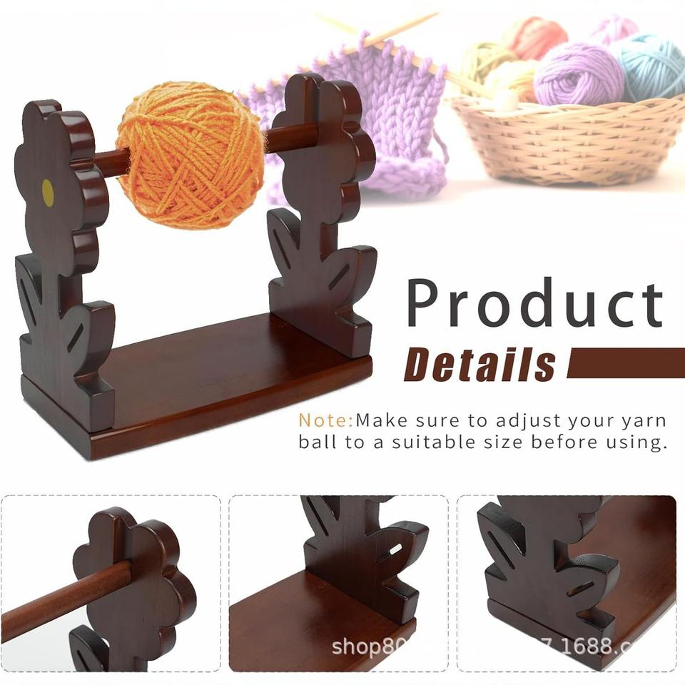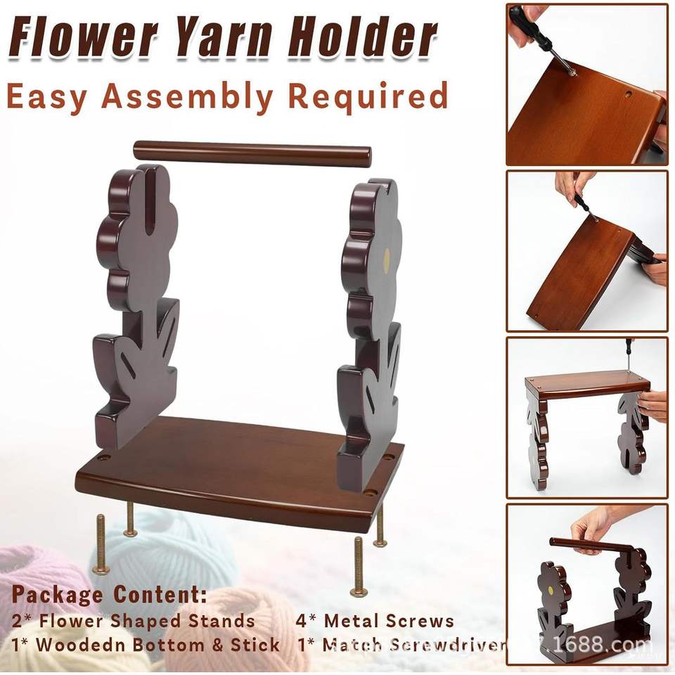 Estante de madera para bobinas de hilo, soporte de almacenamiento de escritorio con forma de flor para manualidades de tejido, suministros de artesanía, color retro, madera maciza
