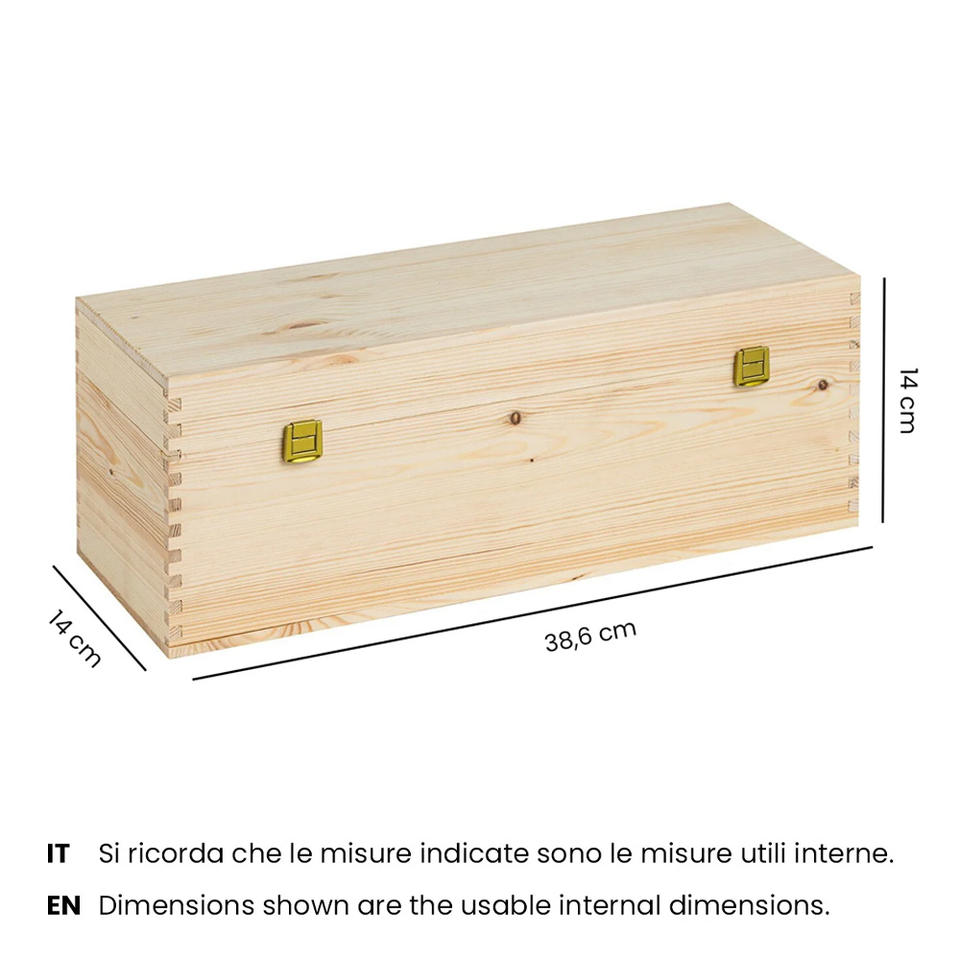 Caja de madera para 1 botella de vino tranquilo de 3000ml (estilo francés). Medidas interiores: 38.6X14X14 CM