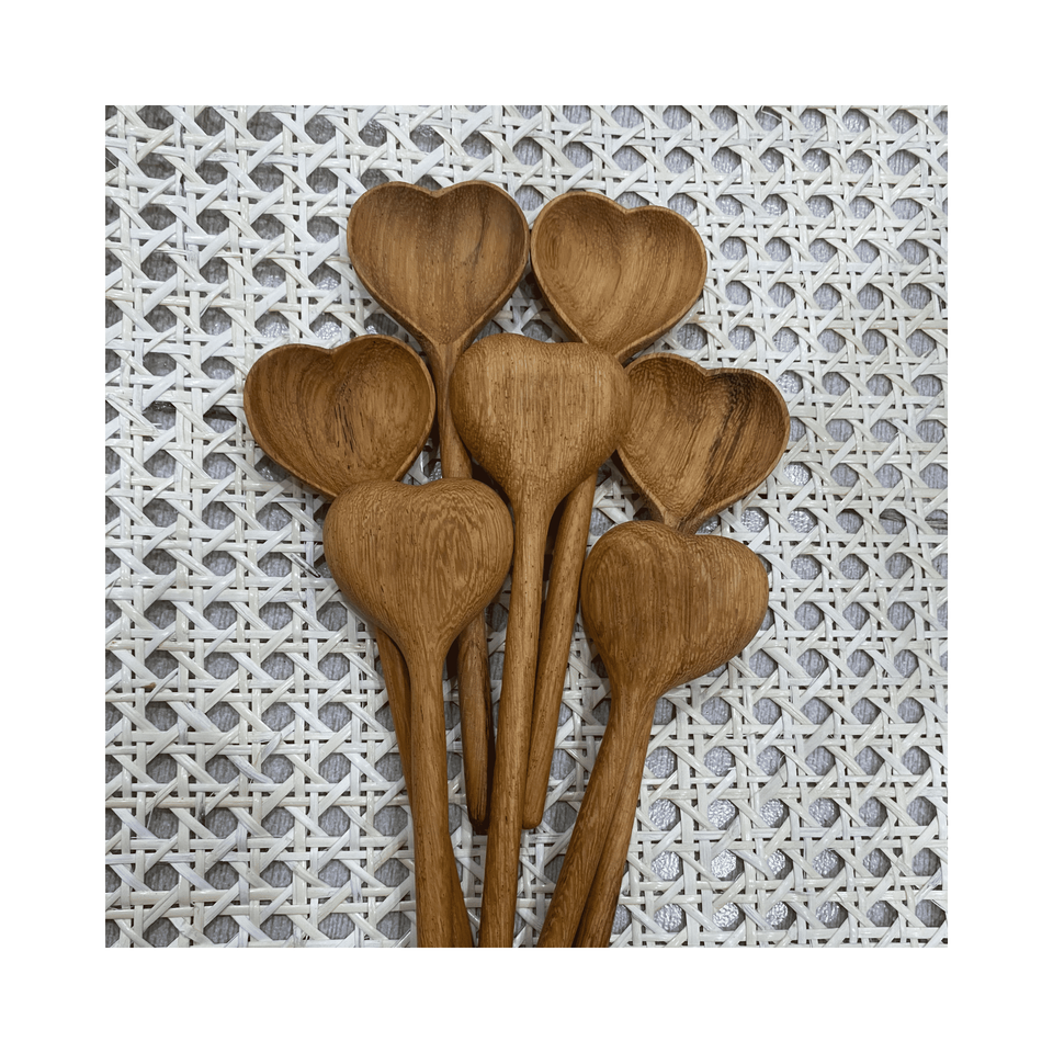 Juego de utensilios de cocina artesanales de madera, material: madera dura mixta; uso: para cocinar en sartenes antiadherentes; origen: Vietnam, marca privada