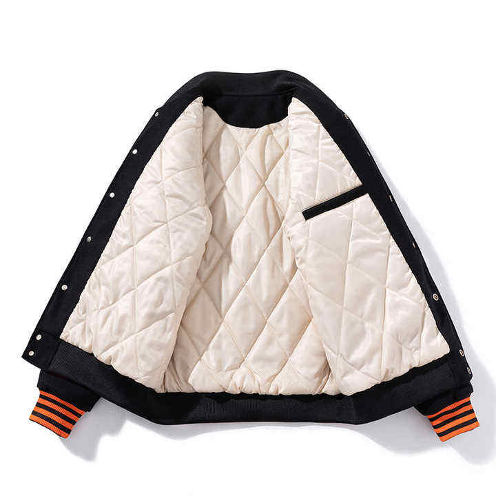 Chaquetas de Béisbol Largas Bordadas en Lana con Logotipo Personalizado, Chaqueta Universitaria Vintage con Mangas de Cuero para Hombre