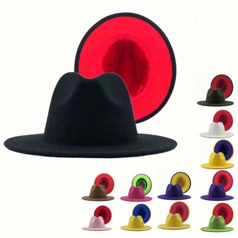 Sombreros Fedora de Fieltro de Lana con Base Roja, Sombrero Fedora de Dos Tonos para Invierno, para Mujer