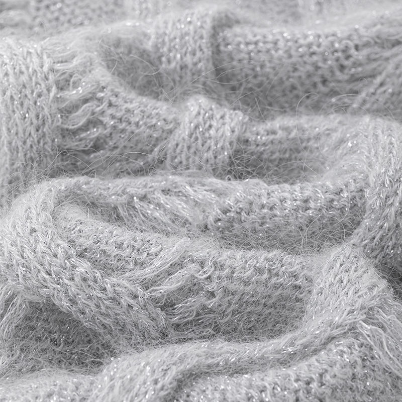 Suéter de lana Vendedor caliente Suéter de punto de cable personalizado Suéter gris de mohair grueso
