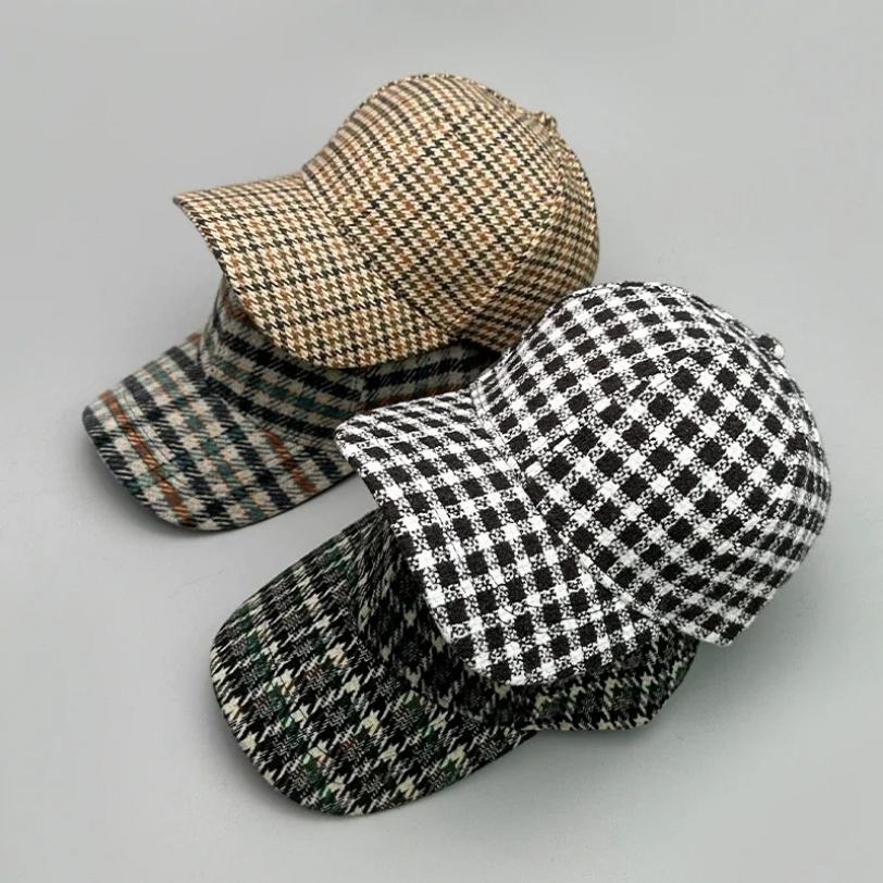 Gorras de béisbol a cuadros a rayas de tela de lana Otoño Invierno nueva moda hombres mujeres estilos de marca sombreros de béisbol a cuadros