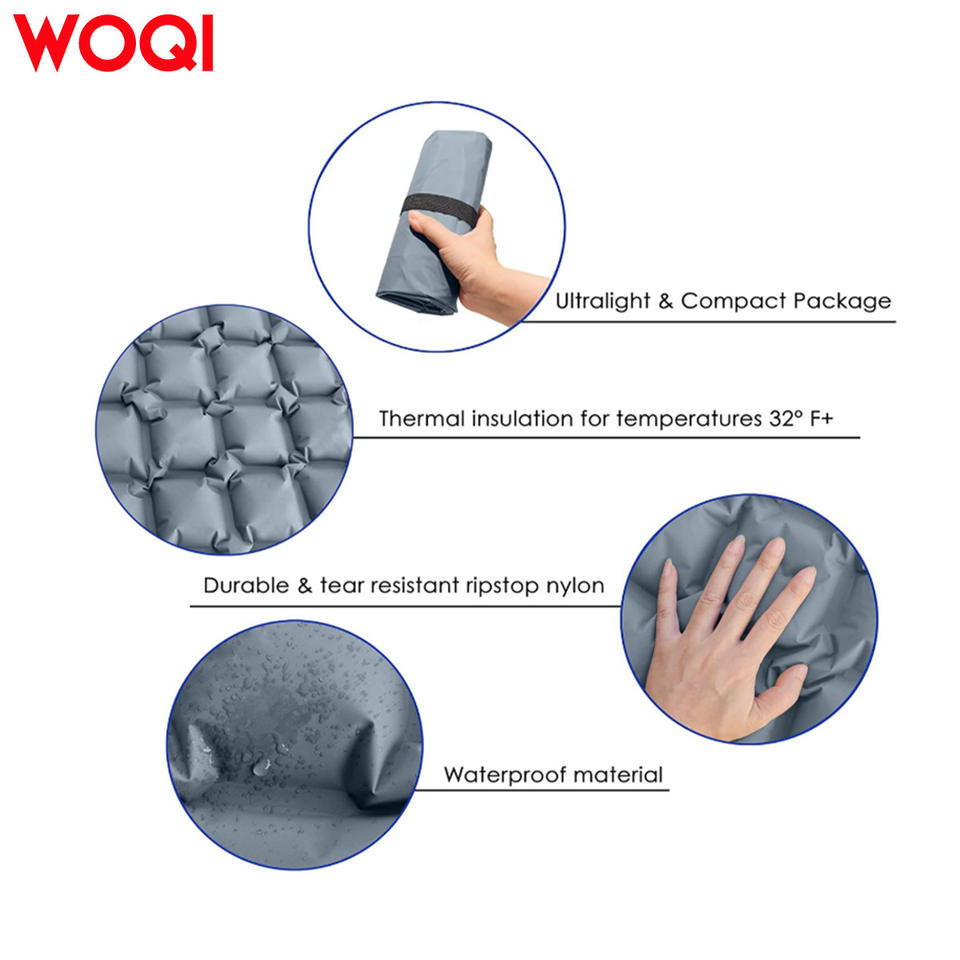 Colchoneta Inflable para Camping Woqi, Rectangular, Gris, Ligera, Colchón de Aire para Excursionismo al Aire Libre, 1 Persona, Nailon 40D TPU