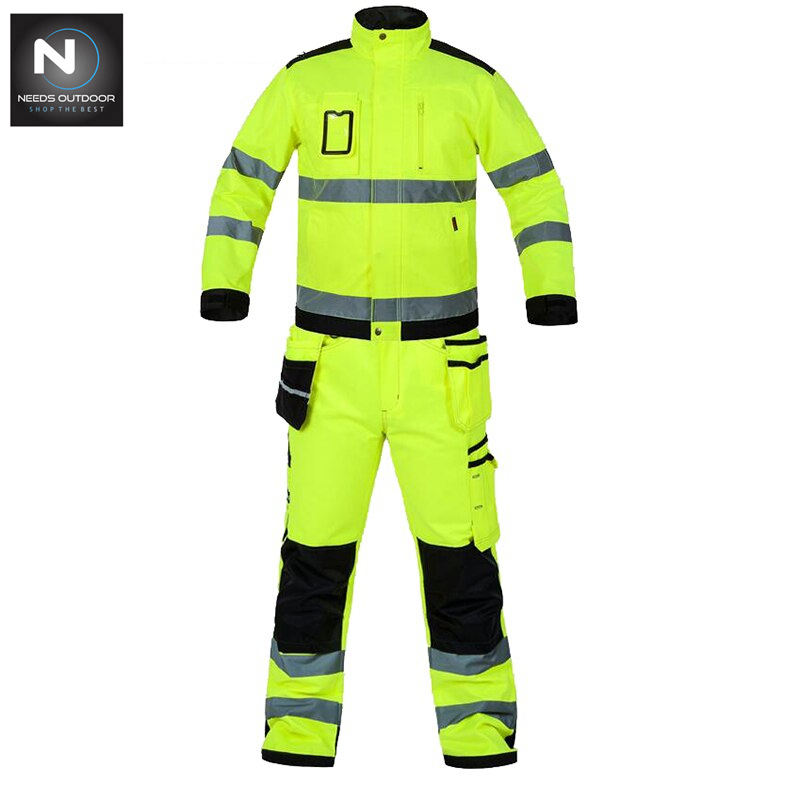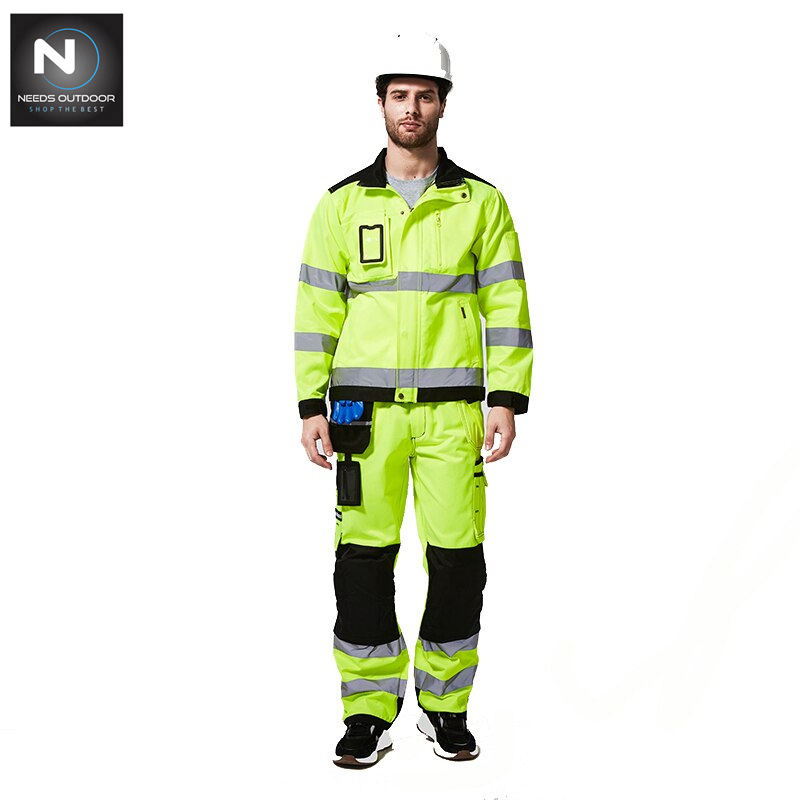 Ropa de trabajo para hombre, chaqueta, pantalones con múltiples bolsillos, ropa de trabajo con rayas reflectantes, advertencia nocturna, para exteriores