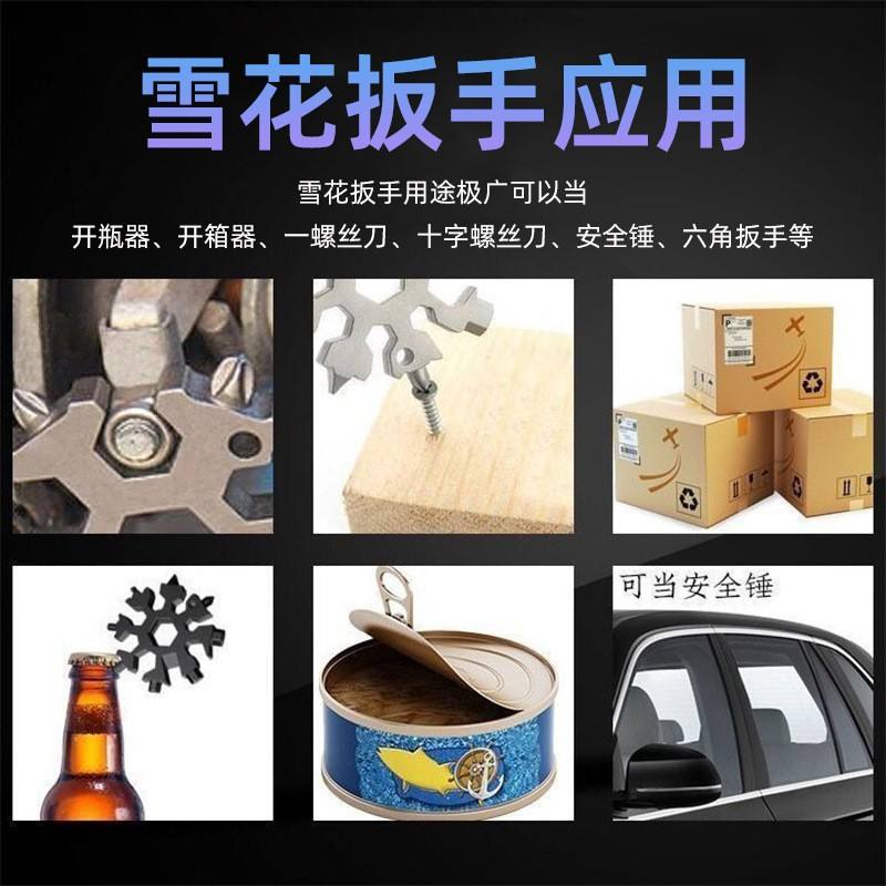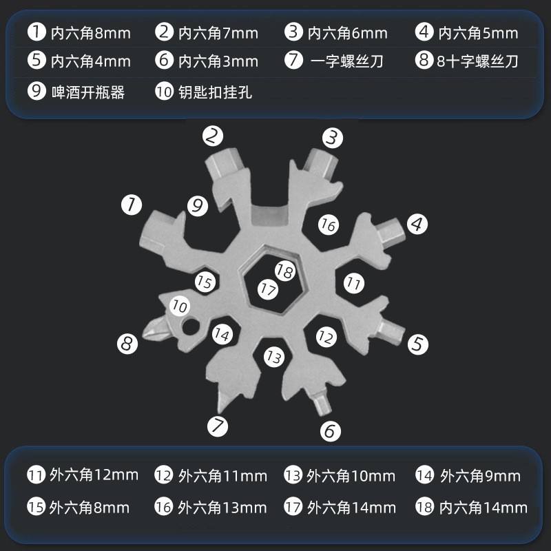 Work Record Snowflake Wrench Keychain Cr-V Steel 8-Sided Multi-Tool Portable Universal