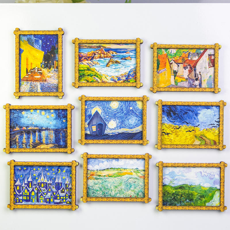 Imanes de Madera para Refrigerador con Pinturas al Óleo de Van Gogh, Estilo Europeo, 57x81mm