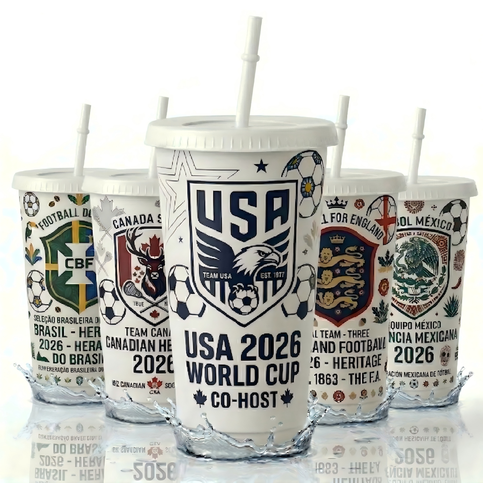 Vaso de Plástico Reutilizable con Logotipo Personalizado para la Copa Mundial de Fútbol, 710 ml, Gran Capacidad, con Pajita, para Todos los Fanáticos del Fútbol