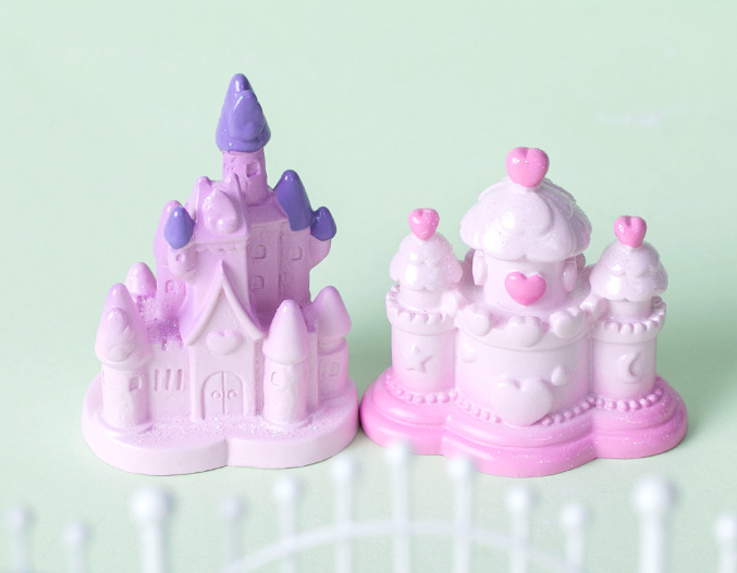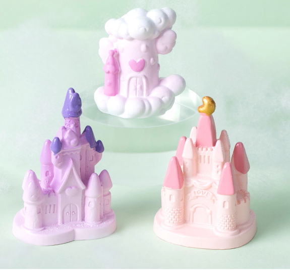 World Village Mini casa juguetes de construcción para niños regalo de Navidad rosa púrpura Luna nube pastel forma resina Castillo miniatura dibujos animados