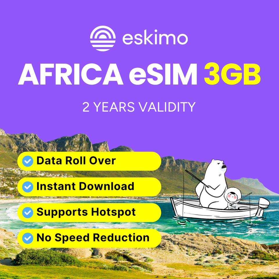 El primer viaje del mundo con datos móviles de la red Blue New Top Eskimo Travel Africa Data - 3GB eSIM con validez de 2 años