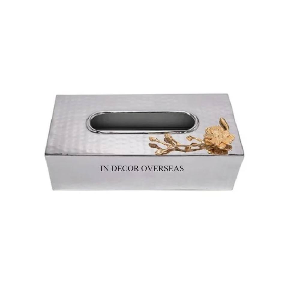 Servilletero de metal de la mejor calidad con recubrimiento en polvo de color negro de venta mundial con diseñador de flores doradas y blancas de la India