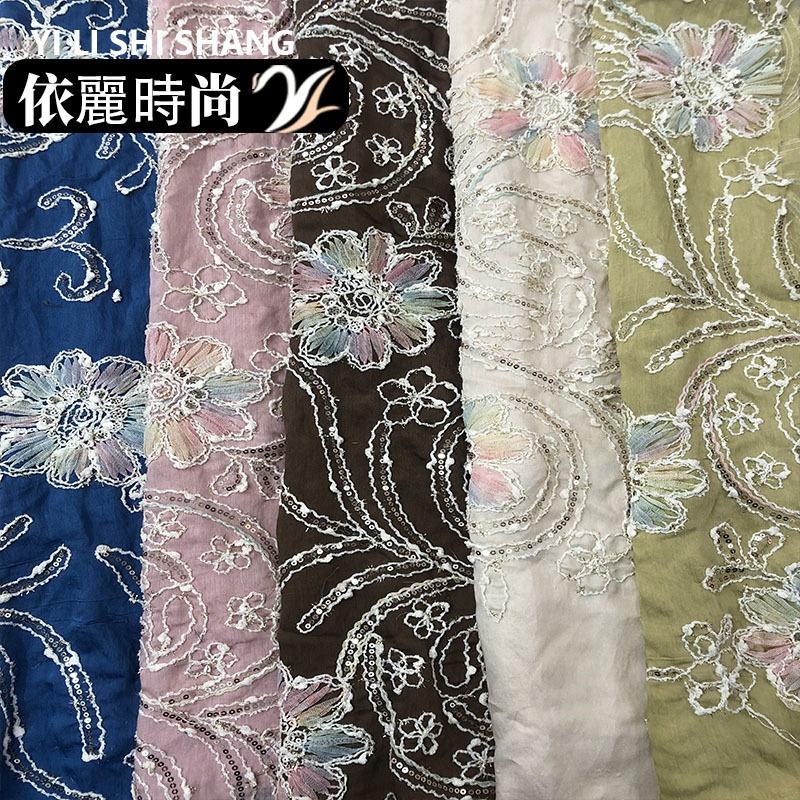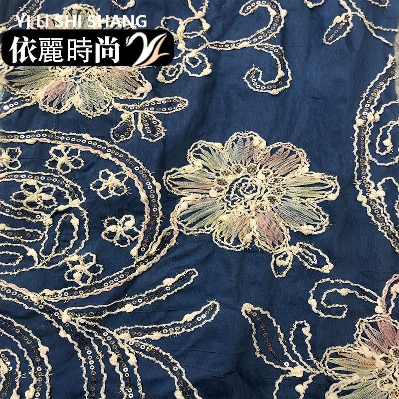 Vestido largo de mezclilla con tela brocada de cuerda bordada con cuentas tejidas, de moda, de lujo ligero, con estampado floral, accesorios para niñas medianas