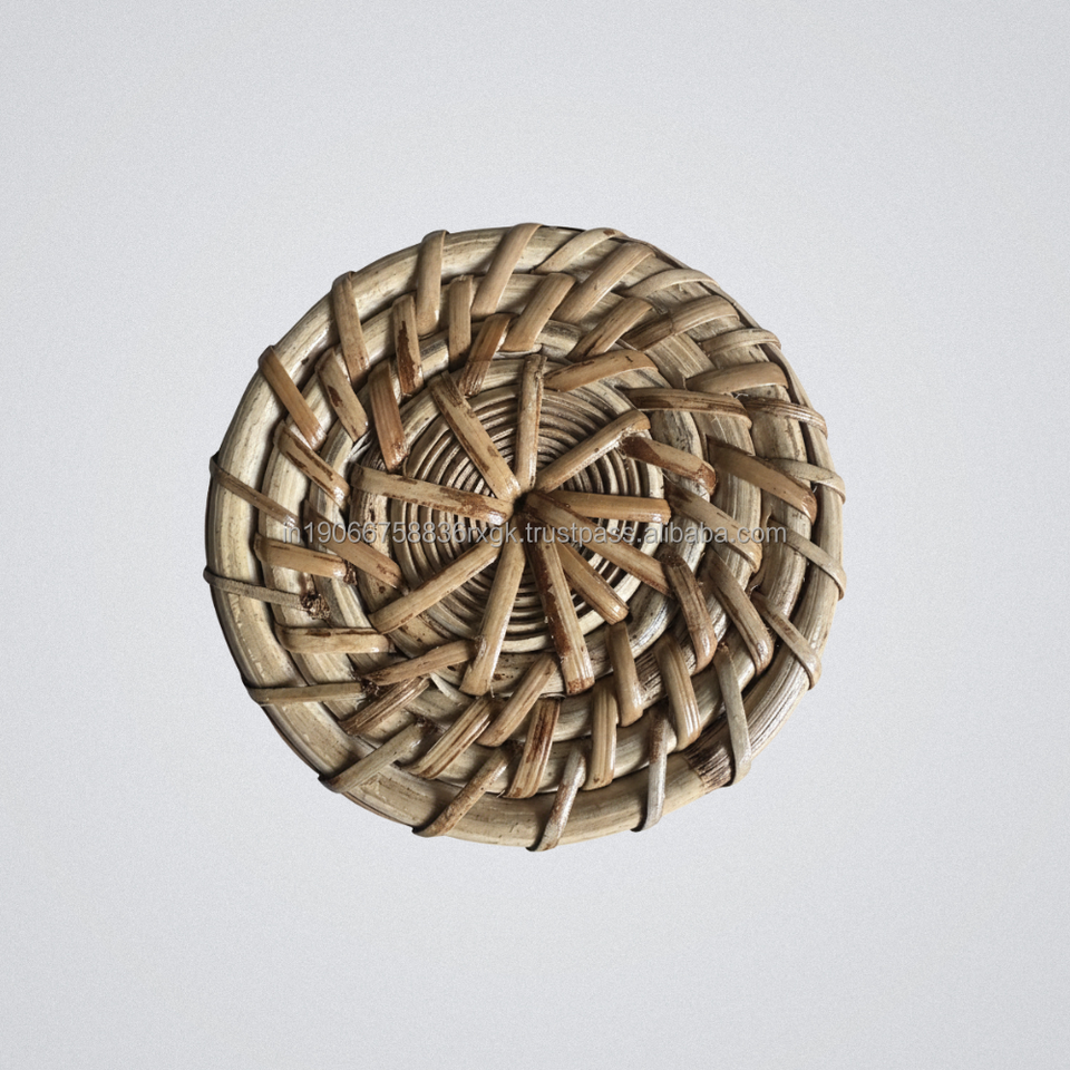 Posavasos de Ratán Tejido a Mano de 4 Pulgadas, Acabado Natural Rústico, Decoración Redonda para Mesa de Boda, Banquete, Uso Doméstico, Ecológico