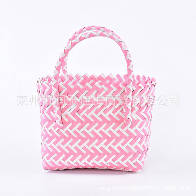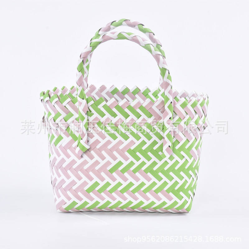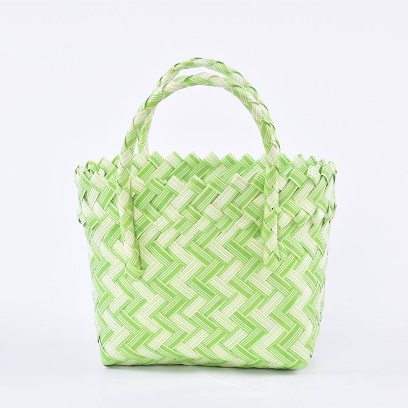 Cesta de Almacenamiento de Plástico PP Tejida, Rectangular, Hecha a Mano, Bolsa Infantil de un Solo Nivel, Verde con Patrón en Zigzag