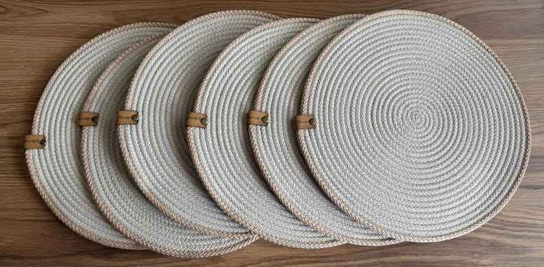 Manteles individuales tejidos Placas de cargador de ratán redondas Manteles individuales de algas marinas Cargadores de placas de paja duraderos y almohadillas de algas marinas