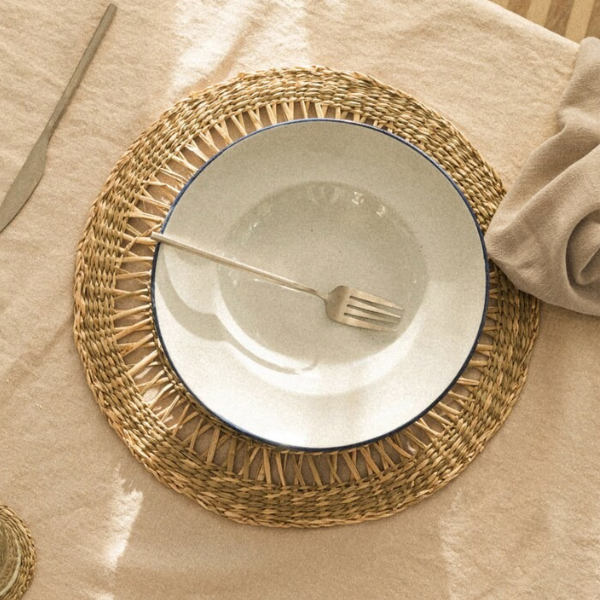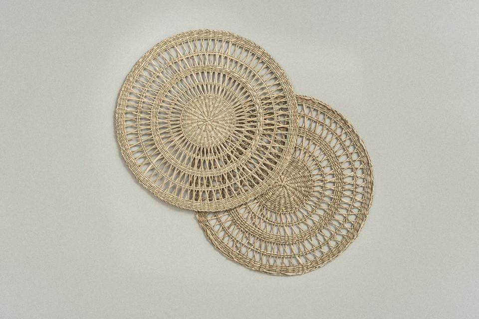 Juego de manteles individuales tejidos de 2 manteles individuales redondos de algas marinas para juego de mesa de comedor manteles tejidos decoración de boda Bohemia regalo de inauguración de la casa