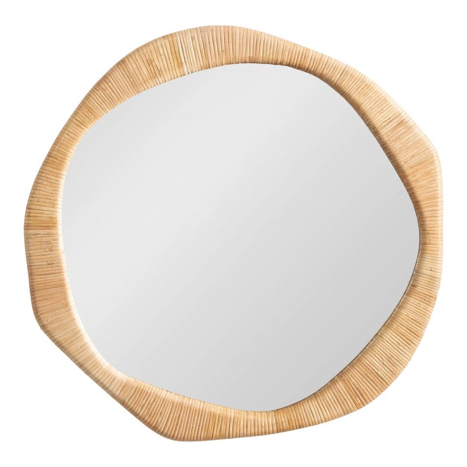 Espejo de pared redondo irregular de ratán tejido, forma natural orgánica, decoración para el hogar, para hotel, cafetería, venta al por mayor, sostenible