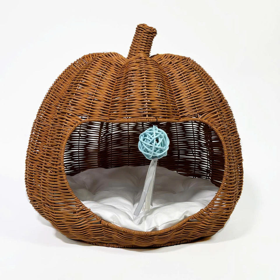 Tejida ratán natural duradero gato casa Cama invierno cálido dormir profundo camas para mascotas Ratán