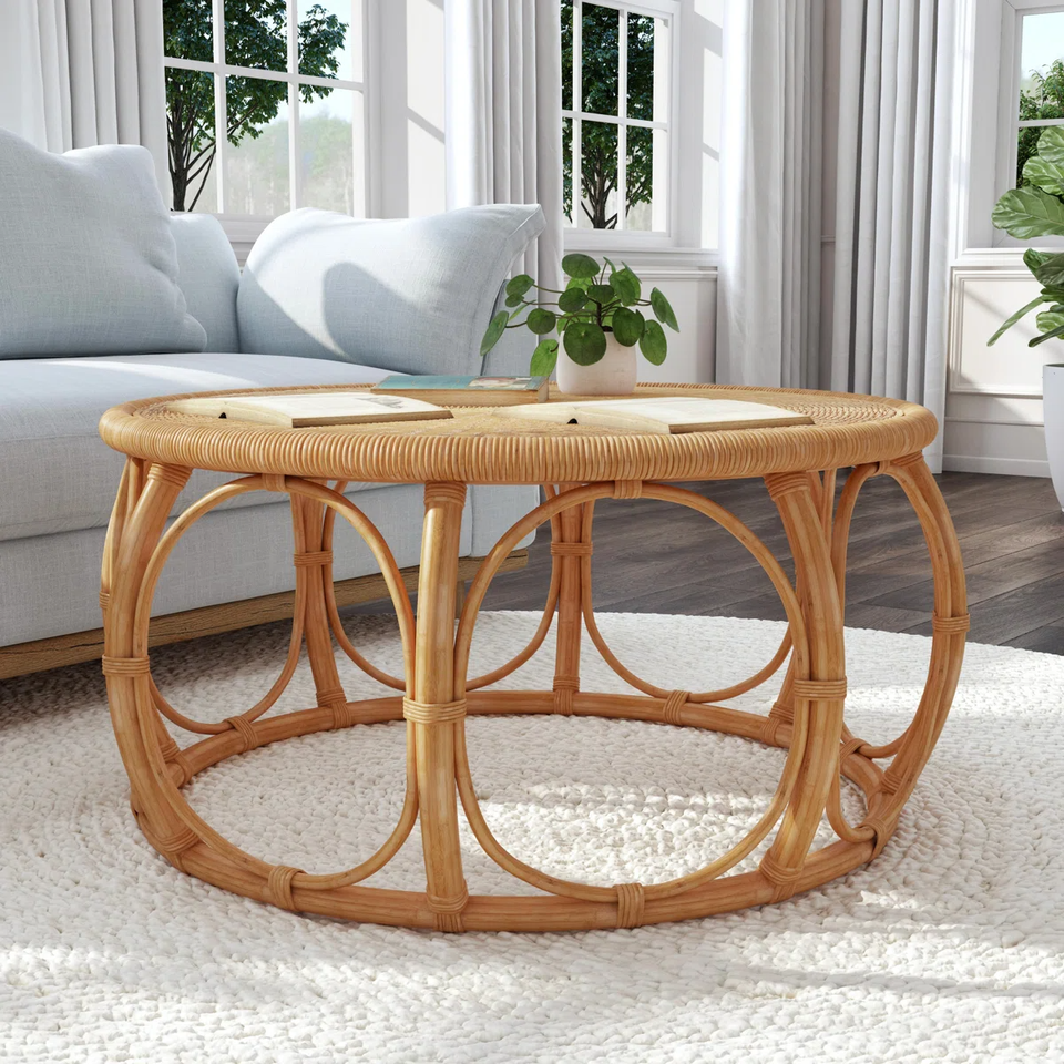 Mesa de centro redonda de ratán tejida:Tamaño: D39,5 x H19 pulgadas