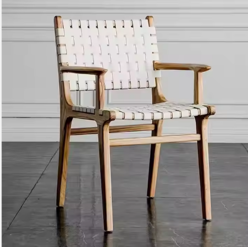 Silla de comedor de ratán de cuero con cuerda tejida, estilo Patio, nogal, madera, Retro sillín, cuero, muebles modernos para restaurante, Sedie Legno