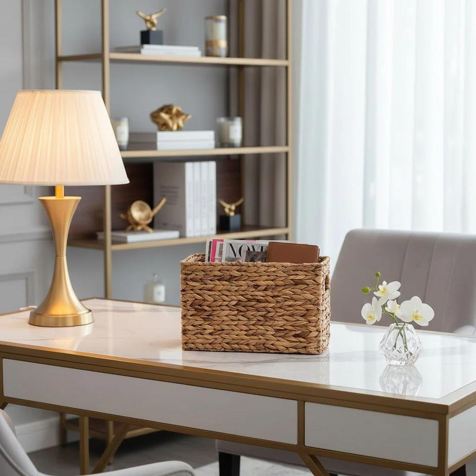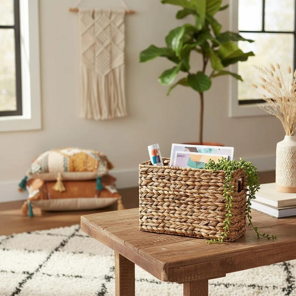 Cesta de almacenamiento tejida de jacinto de agua:Tamaño: L15,5 x A5,5 x H9,8 pulgadas