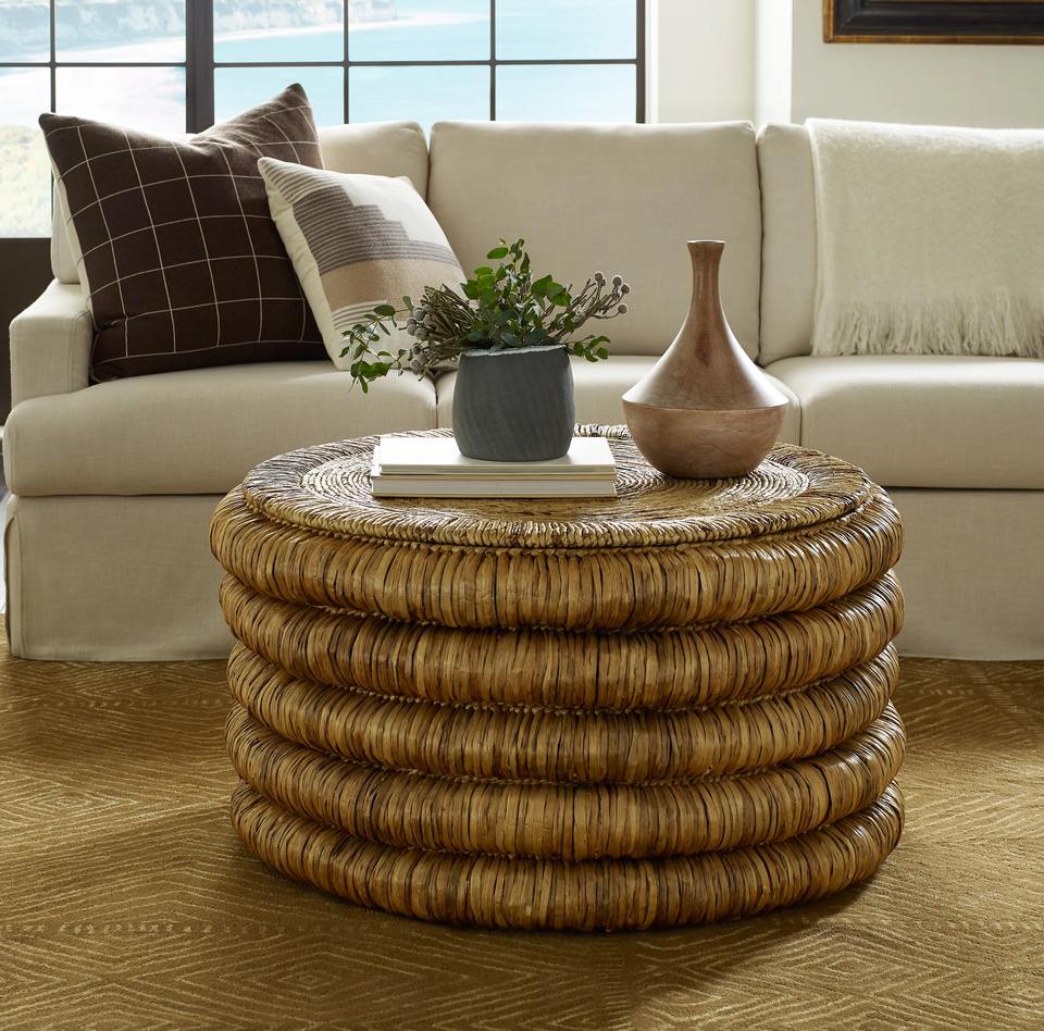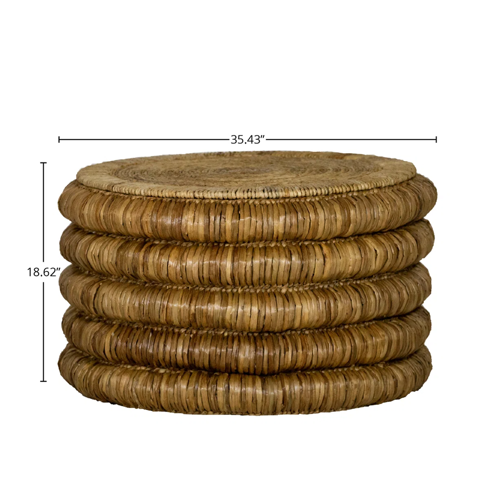 Tabla de té tejida del jacinto de agua:Tamaño: D35,4 x H18,6 pulgadas